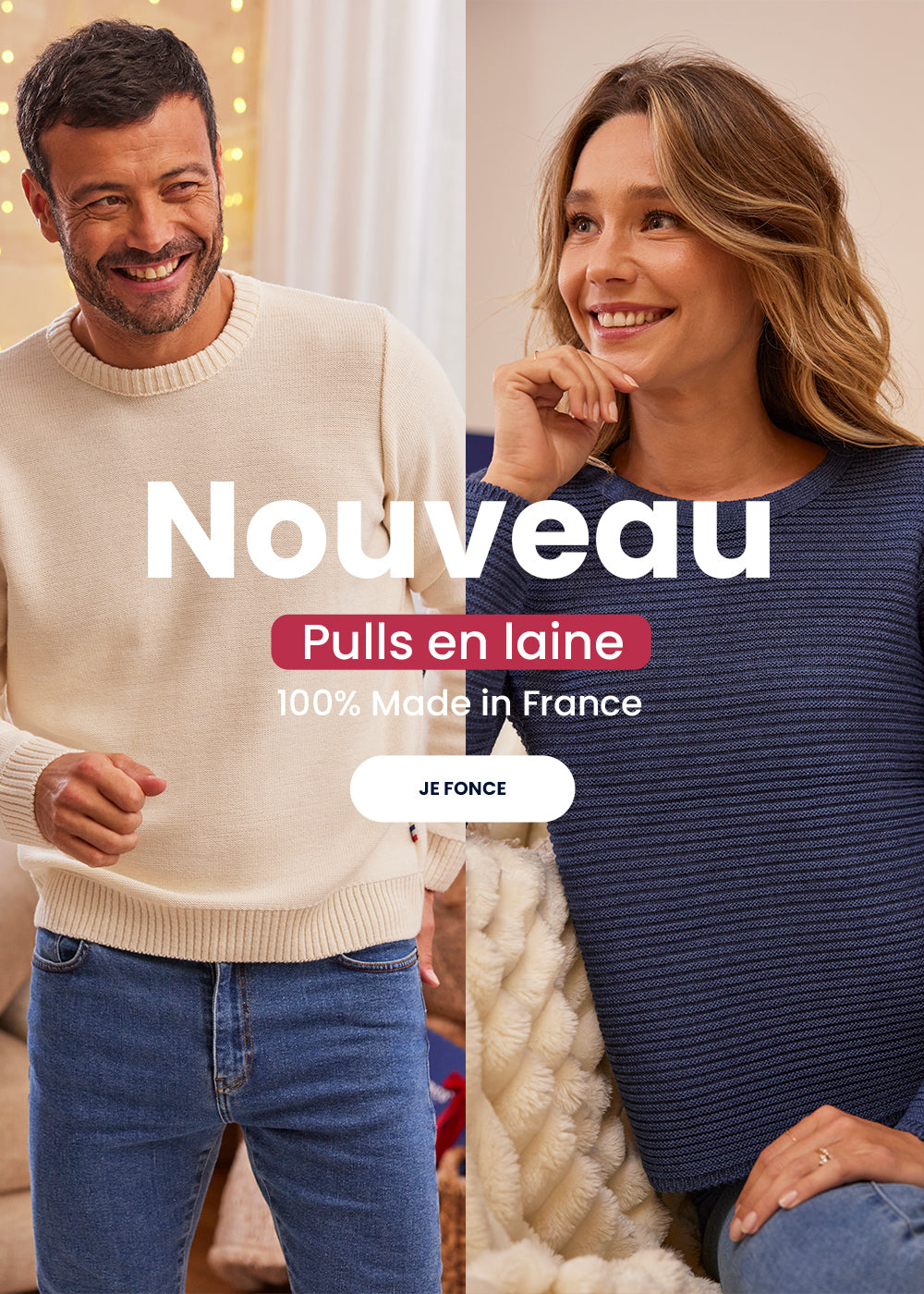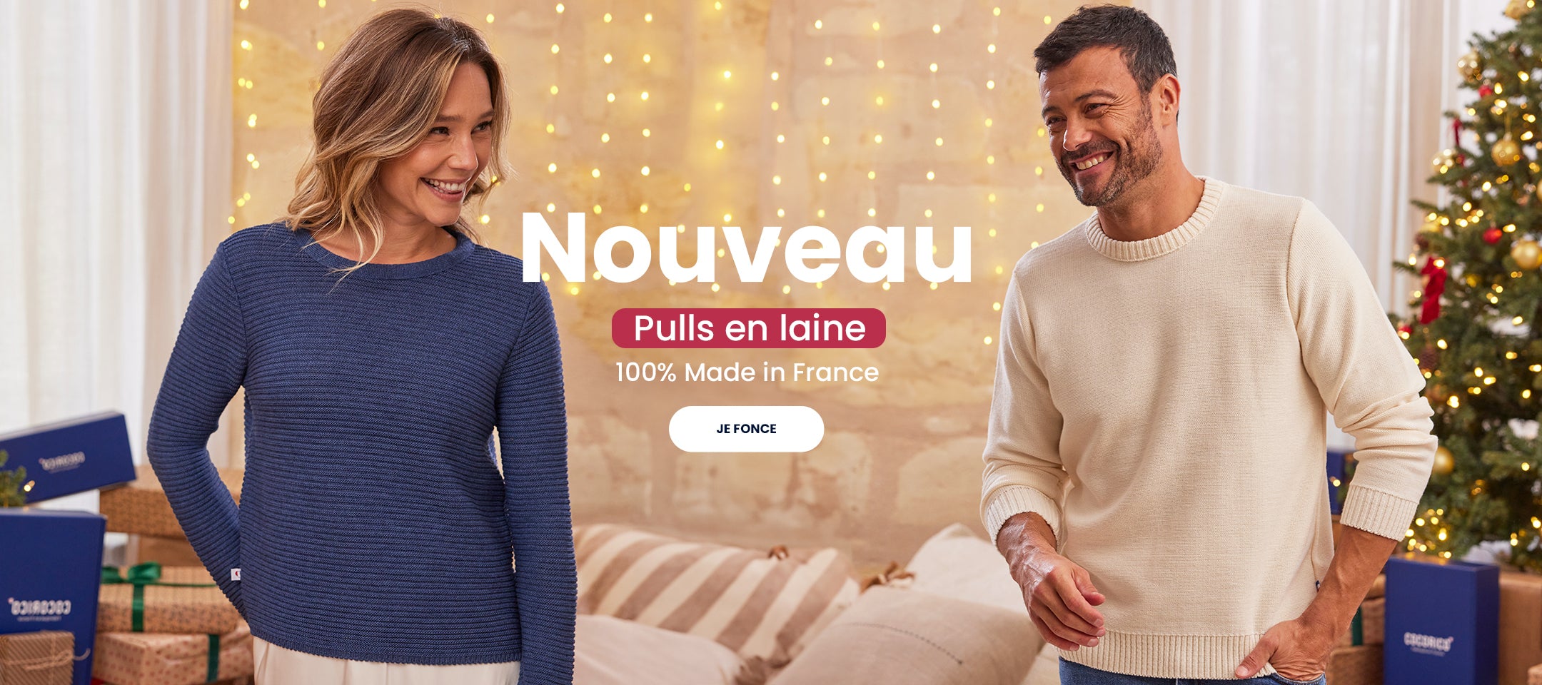 Nos t-shirts en coton, pulls en laine, sweats homme et femme, mais aussi nos chaussons douillets et chaussettes de Noël fabriquées en France sont des cadeaux éthiques, durables et pleins de sens.