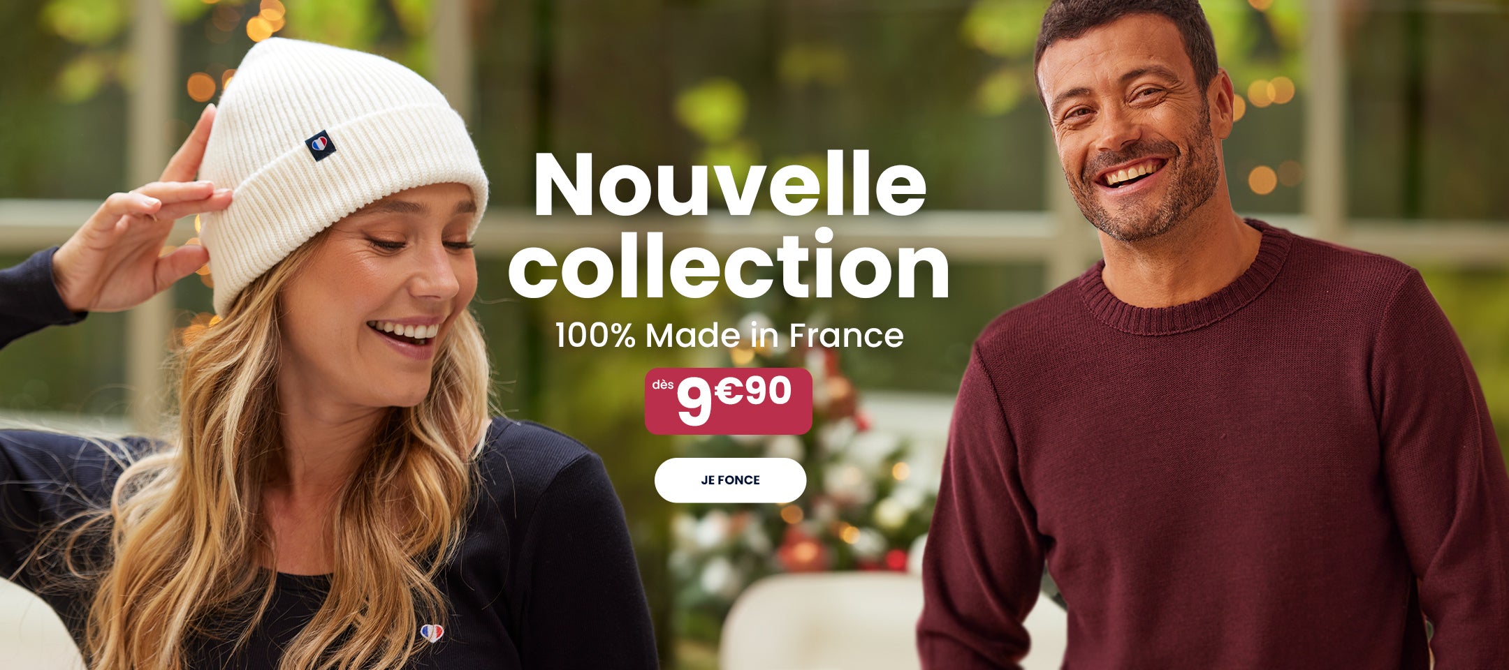 Découvrez toutes nos idées cadeaux de Noël Made in France : t-shirts, sweats, pulls, bonnets, ou encore sous-vêtements à (s’)offrir et à glisser sous le sapin.