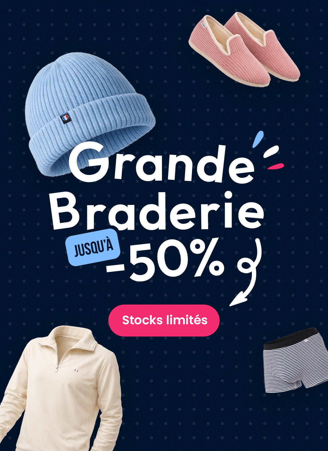 Nous avons aussi fait du bruit en sortant le premier boxer 100% Made in France à 9,90€ seulement. Il nous a permis de prouver qu’un Made in France abordable pouvait exister. Depuis 2016, ce sont près d’un million de pièces qui ont été vendues et c'est grâce à vous, merci !