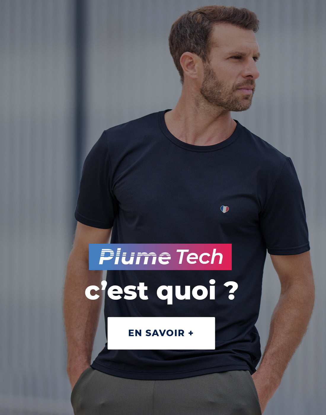 Nous avons développé avec notre usine située dans le Tarn la matière parfaite pour notre gamme de vêtements de sport. Nous avons appelé cette Technologie PLUME, en référence à sa légèreté et sa douceur.