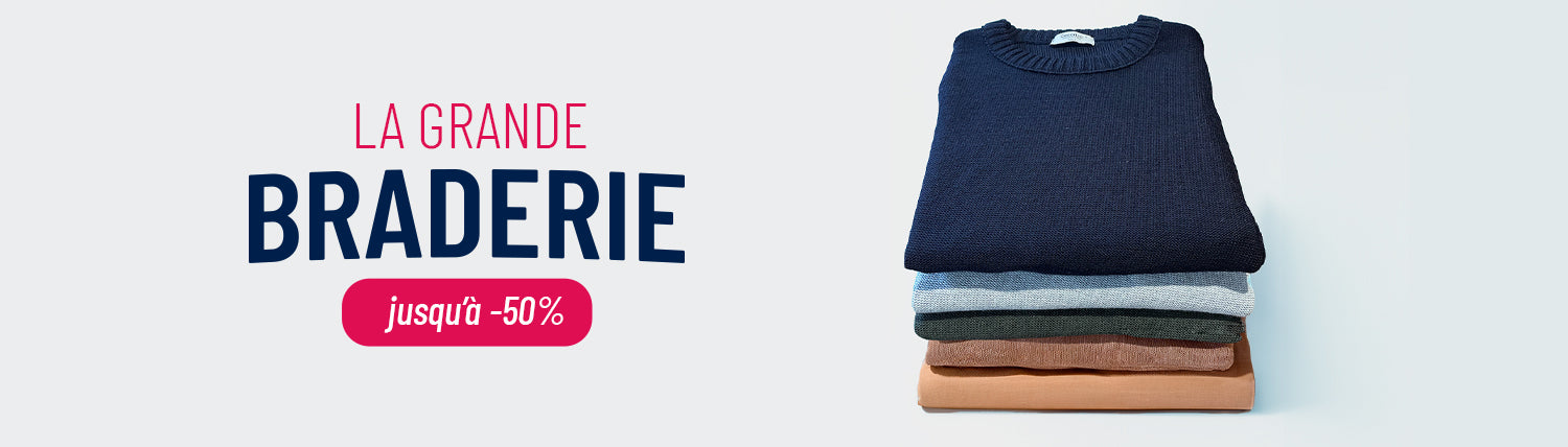 Notre engagement envers la qualité et le style se reflète dans la grande braderie de vêtements homme et femme. Explorez notre collection de vêtements made in France, alliant savoir-faire artisanal et design contemporain. La grande braderie est l'occasion parfaite de mettre la main sur des articles de qualité à des prix imbattables. Profitez-en pour révéler votre style unique !